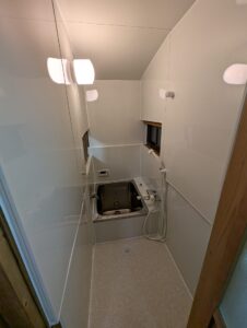 というのも、スペースが狭くて分解して組み立てできないので、ユニットバスが設置できません。
