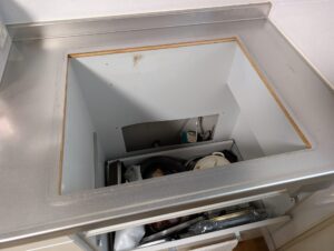 まずは、この古いIHをキッチンカウンターから慎重に取り外します。
