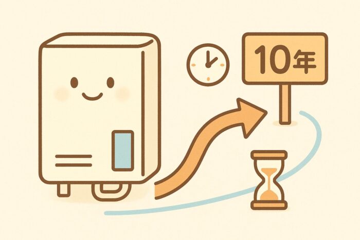 これ、意外と知られていないんですが、エコキュートや電気温水器、ガス給湯器も含めて、寿命の目安は「約10年」と言われています。