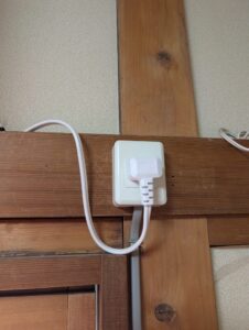 こちらが新しいコンセント。柱にしっかり固定され、見た目もスッキリ。プラグを挿した時の「カチッ」という手応えも復活し、これで安心して使っていただけます。