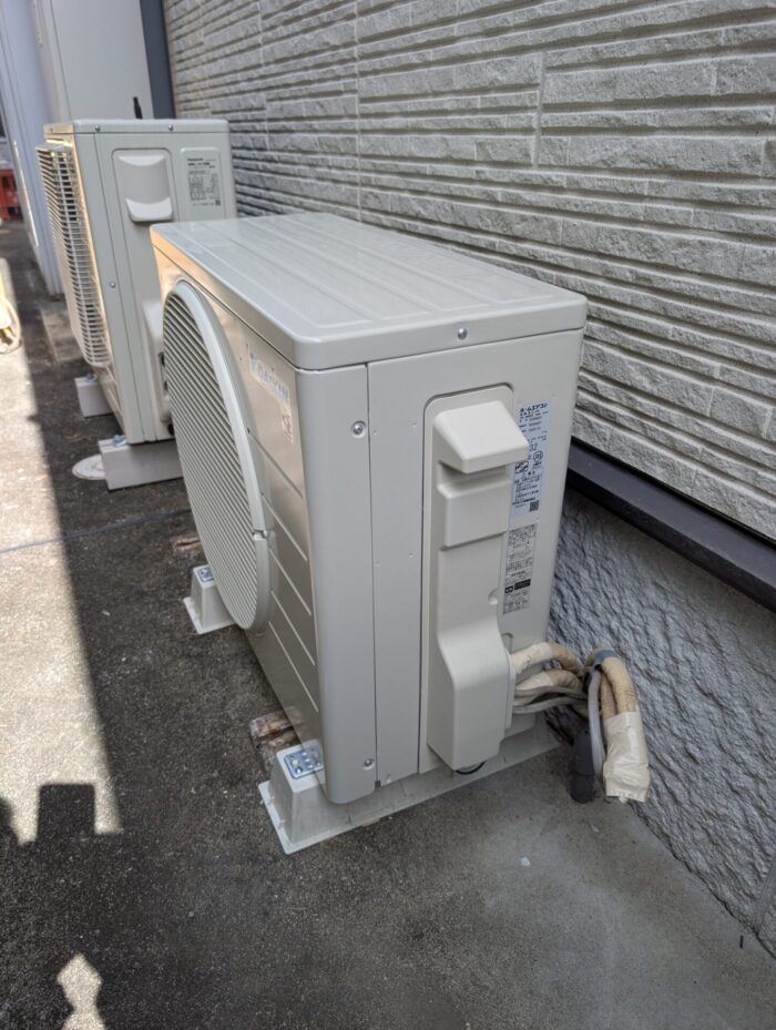 マルチエアコンでの取り替えも提案させてもらったんですが、「片方の部屋はもう使わないから、1台でいいわ」とのこと。ということで、ダイキンのルームエアコン(室外機1台・室内機1台)への取り替えとなりました。